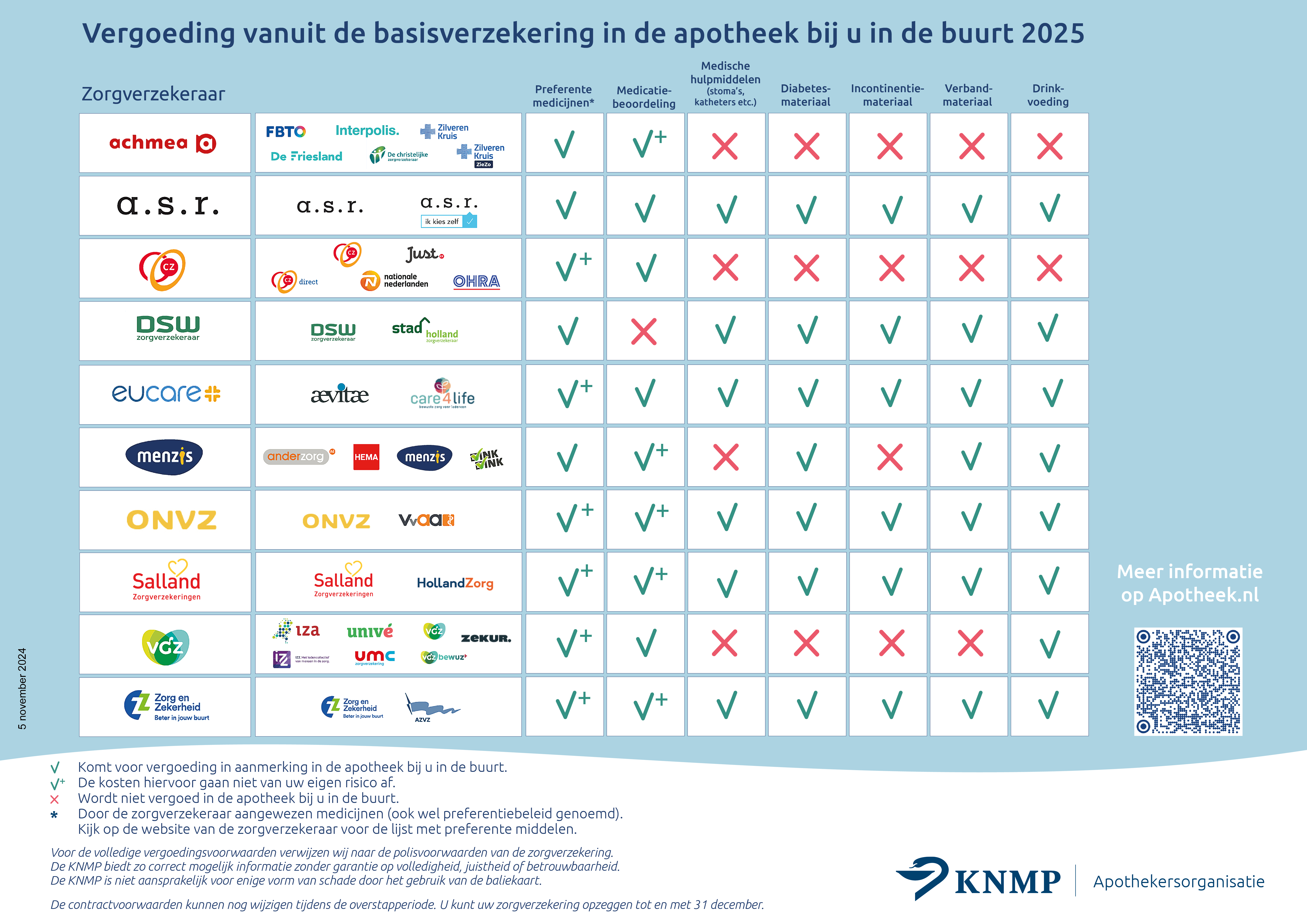 De KNMP maakt met een baliekaart eenvoudig inzichtelijk hoe zorgverzekeraars de apotheekzorg in 2025 gaan vergoeden. Dit overzicht laat zien welke soorten farmaceutische zorg bij de lokale apotheek vergoed worden vanuit de basisverzekering. De baliekaart is een handzame informatiebron voor patiënten die overwegen om van zorgverzekering te wisselen.