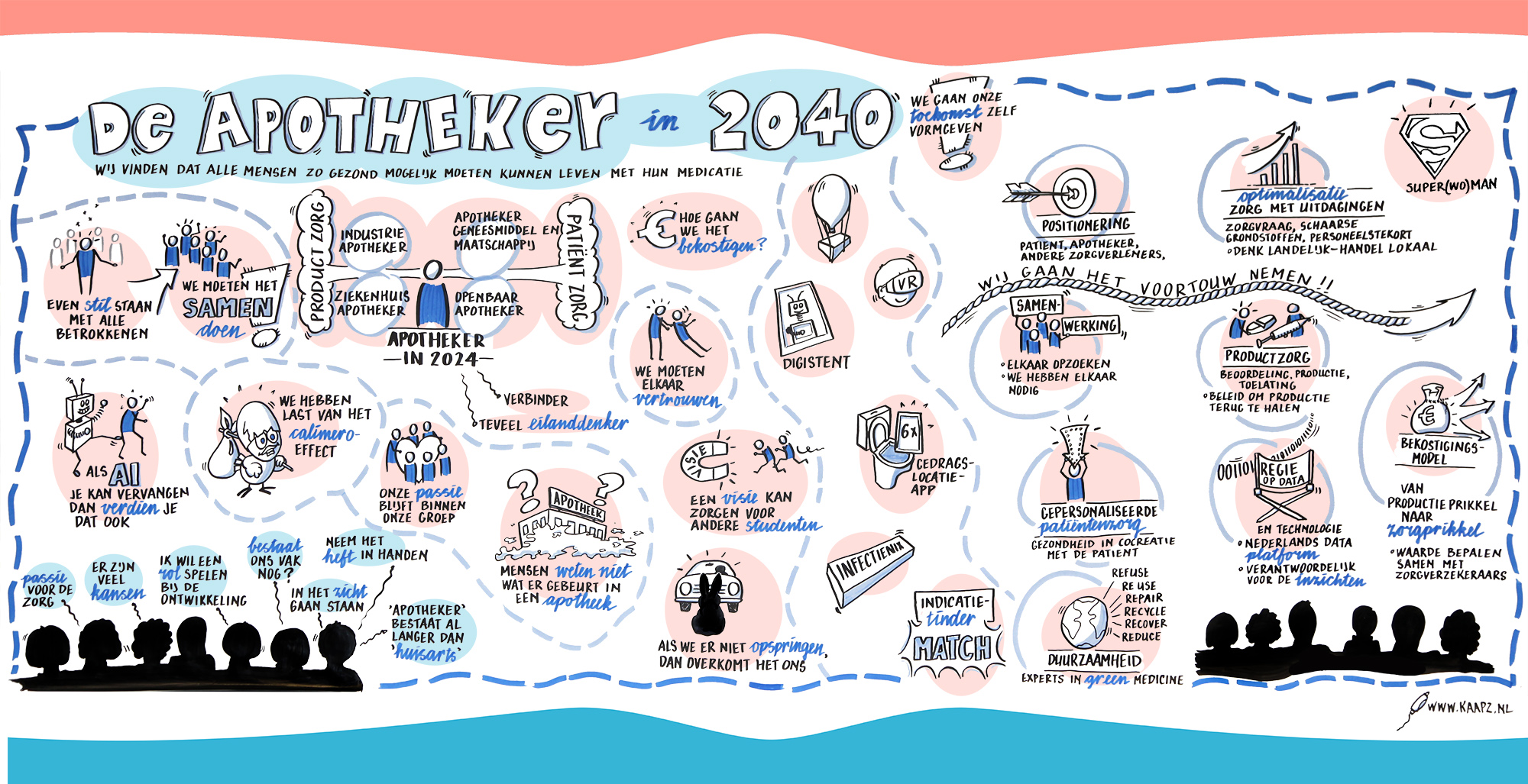 Ruim vijftig deelnemers hebben in een werkatelier gezamenlijk een conceptvisie op de apotheker in 2040 ontwikkeld, mét bijbehorende strategische agenda. Deze agenda draagt eraan bij dat apothekers in 2040 voor iedereen de specialisten zijn op het gebied van geneesmiddelen.